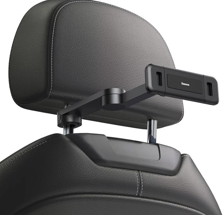 Baseus headrest holder for iPad phone tablet In car device clamp attach tablet to back of your car seat Clamp your iPad, phone or tablet onto the back of your car seat with the Baseus headrest holder to securely hold it in place for the duration of your journey. This anti-shock device has a unique design, includes a 360° rotating head, and can be adjusted to fit any device from 5-25cm / 4,7-12,3 inch. Crafted from durable and lightweight materials such as aluminium alloy, polycarbonate and silicone, this holder is easily assembled and is the perfect traveling companion. Supports a device weight up to 1 KG.