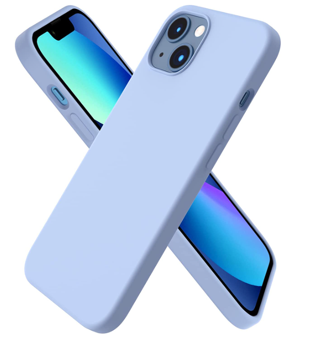 iPhone 13 phone case Soft Flexible Rubber Protective Cover light blue liquid silicone This silicone case fits snugly over the buttons and curves of your device without adding bulk. A soft microfiber lining on the inside helps protect your phone. Yoke