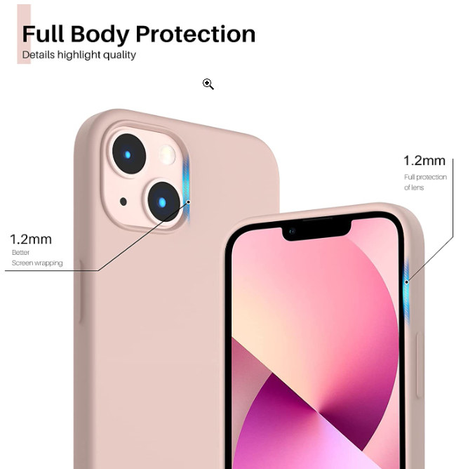 iPhone 13 phone case Soft Flexible Rubber Protective Cover pink liquid silicone This silicone case fits snugly over the buttons and curves of your device without adding bulk. A soft microfiber lining on the inside helps protect your phone. Yoke