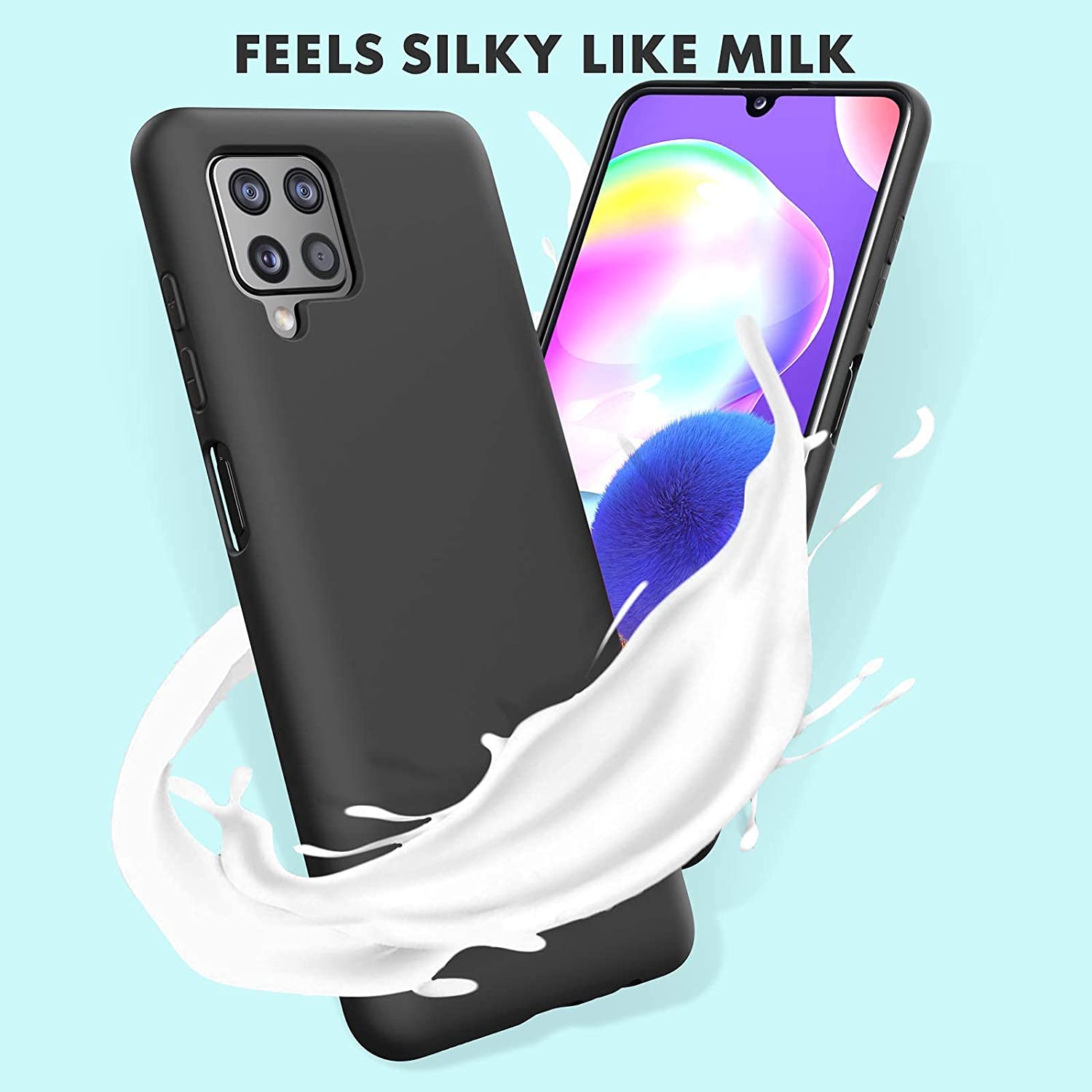 Samsung A12 phone case Soft Flexible Rubber Protective Cover black liquid silicone This silicone case fits snugly over the buttons and curves of your device without adding bulk. A soft microfiber lining on the inside helps protect your phone. Yoke