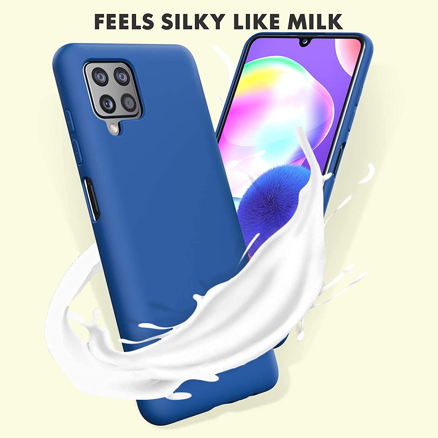 Samsung A12 phone case Soft Flexible Rubber Protective Cover blue liquid silicone This silicone case fits snugly over the buttons and curves of your device without adding bulk. A soft microfiber lining on the inside helps protect your phone. Yoke
