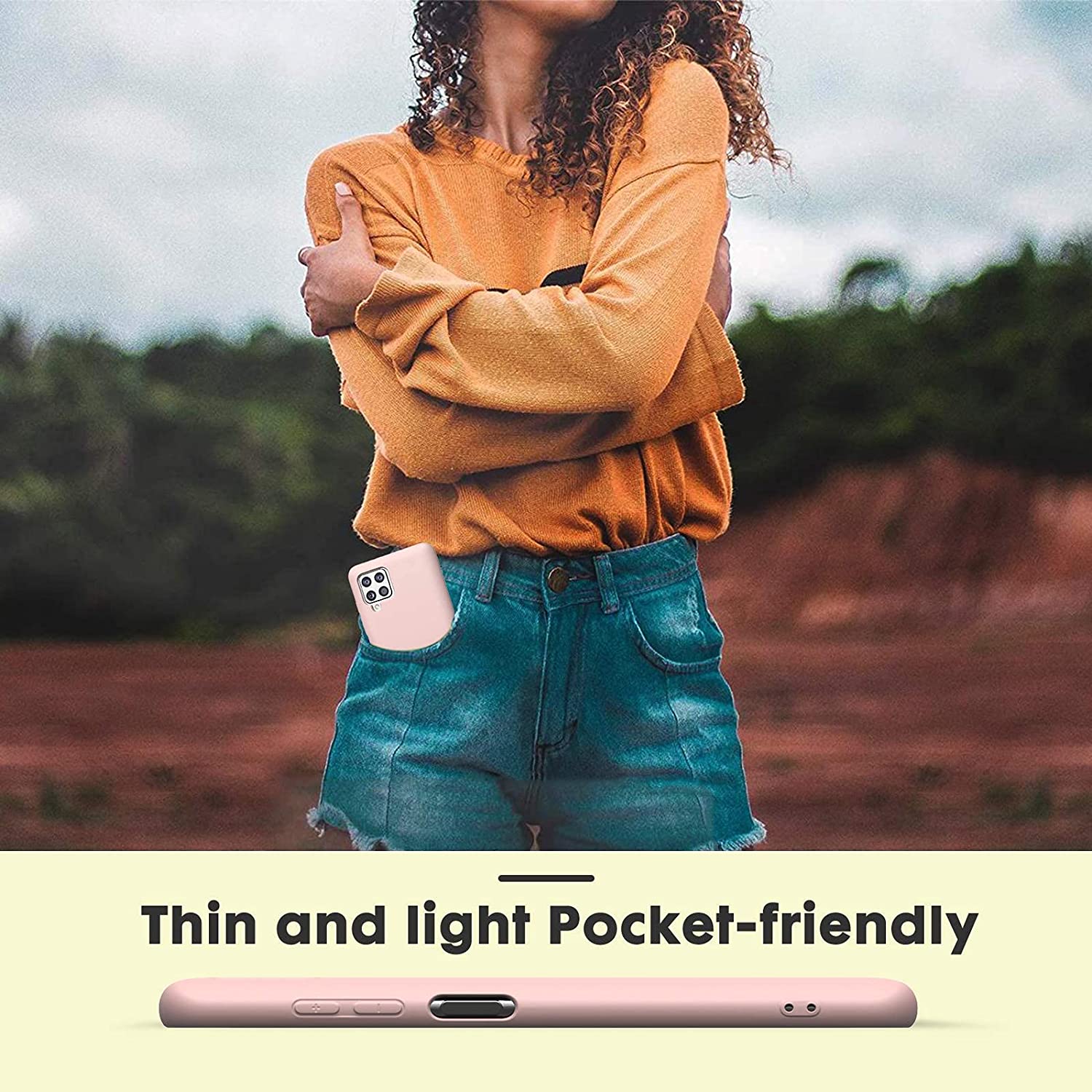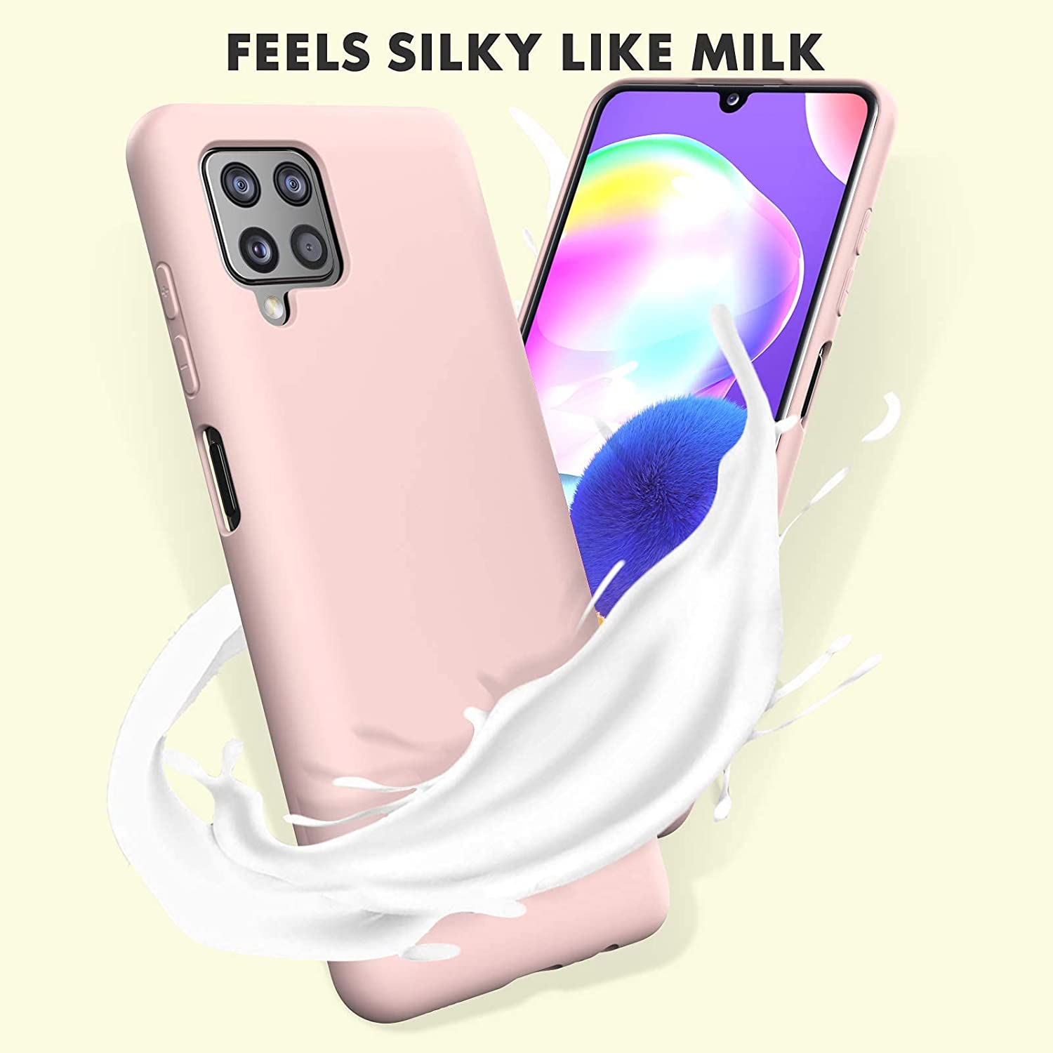 Samsung A12 phone case Soft Flexible Rubber Protective Cover pink liquid silicone This silicone case fits snugly over the buttons and curves of your device without adding bulk. A soft microfiber lining on the inside helps protect your phone. Yoke