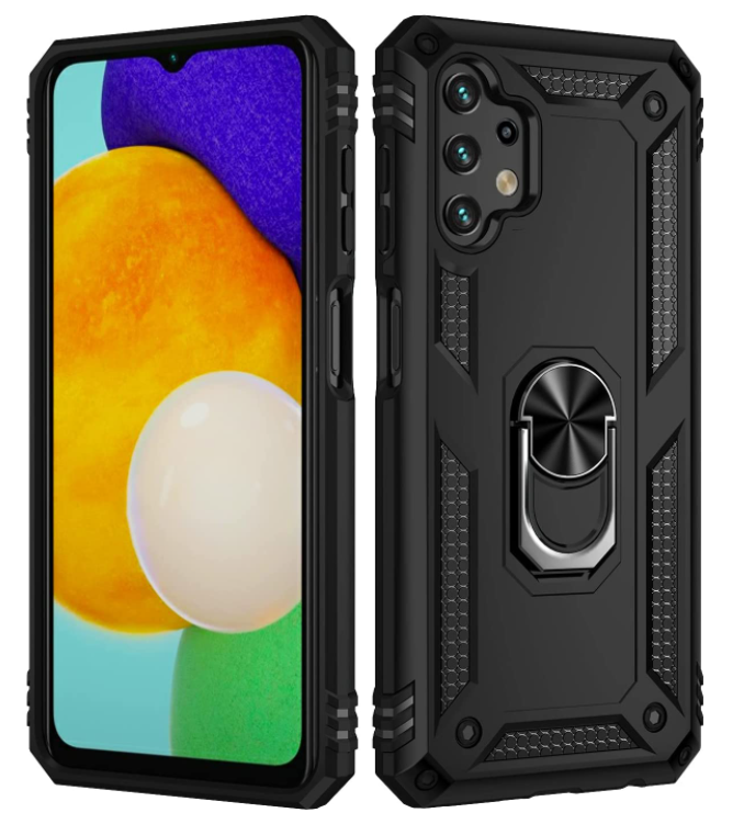 Samsung A13 4G 5G phone case Black ring armor anti drop shockproof rugged protective Screen protection function raised lip edge to provide good protection for your phone screen, the shockproof air-cushion corners provide full-frame anti-scratch protection. Extreme drop protection with two layers of impact resistance. Ultra-Slim: The ring armor is light weight and has an ultra-slim design. Yoke
