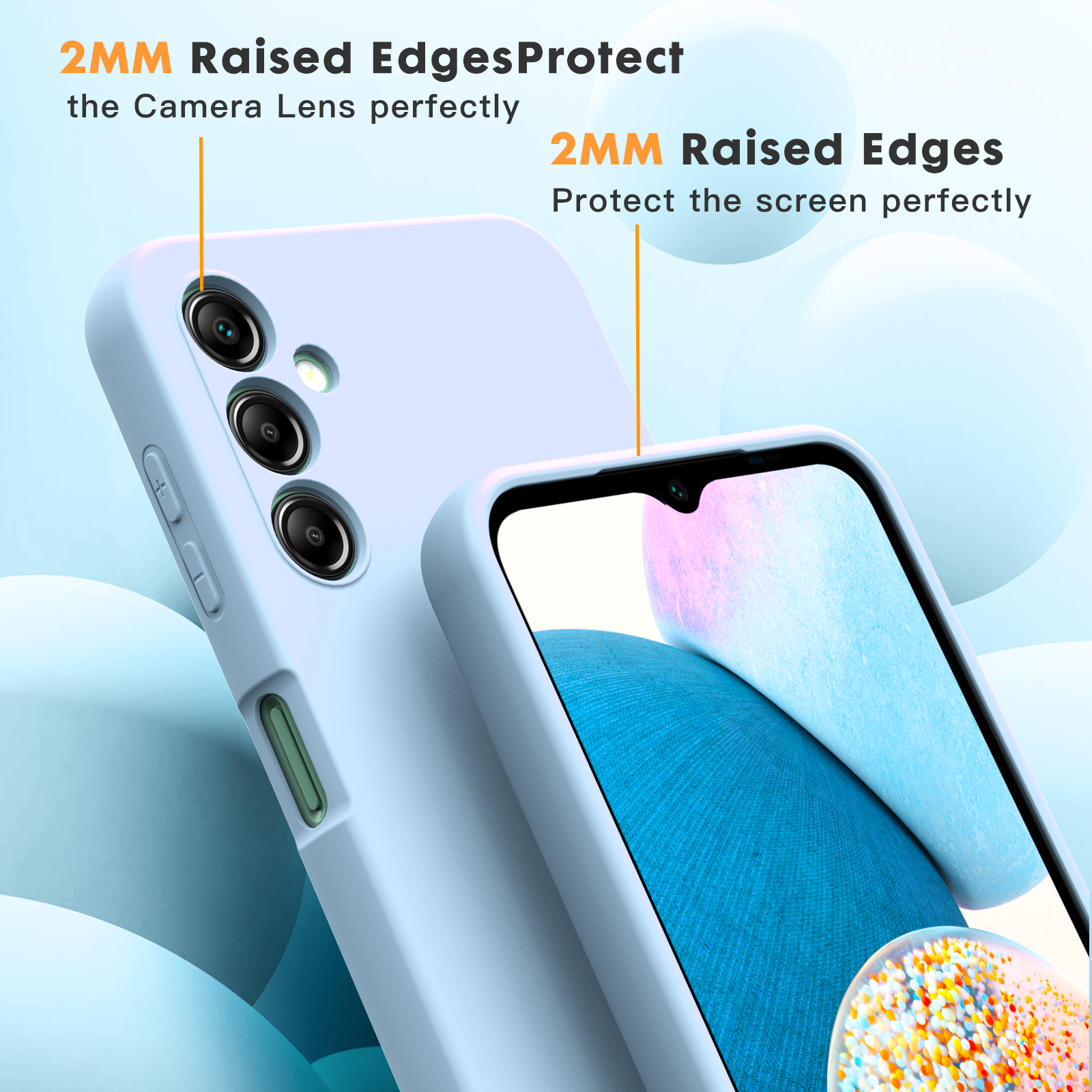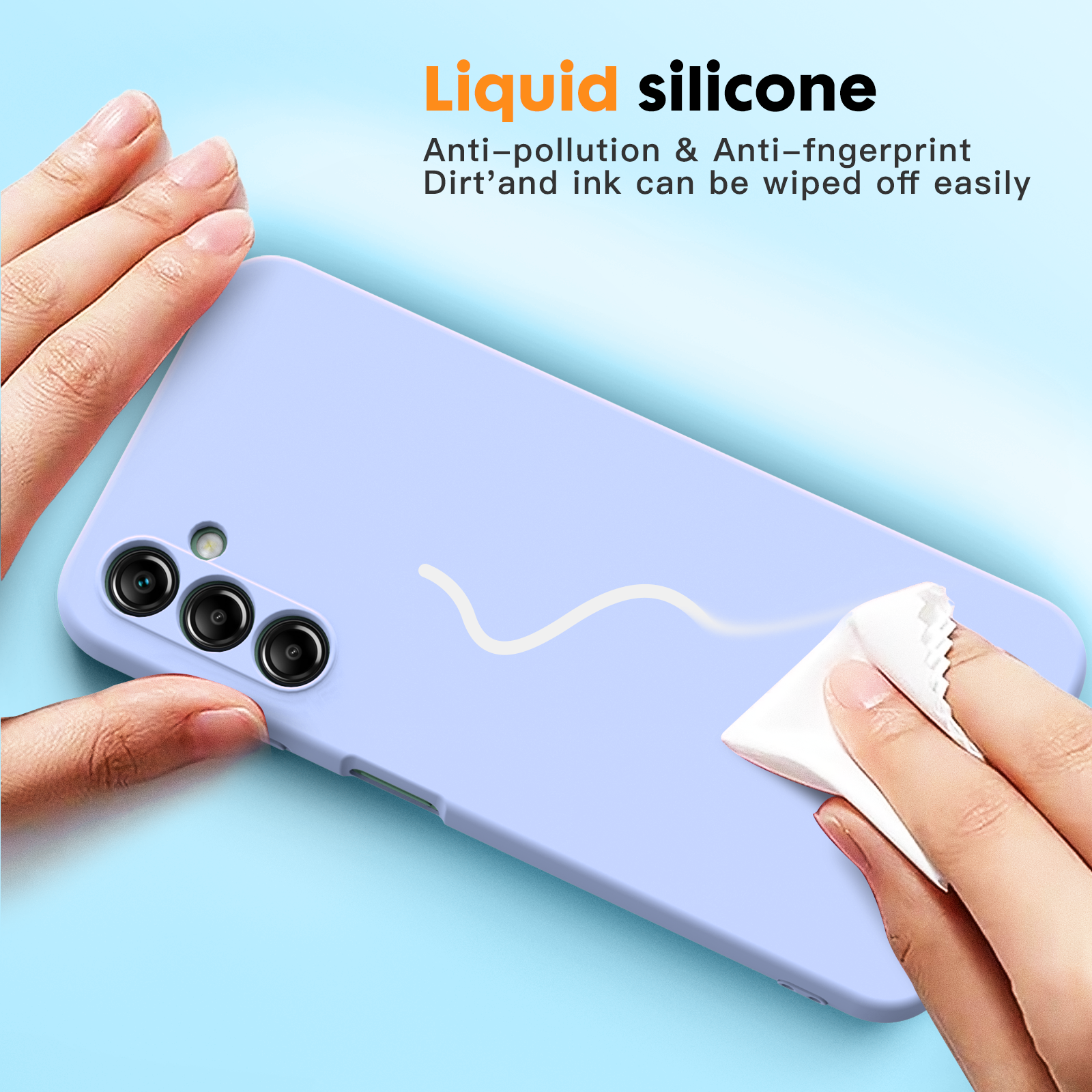 Samsung A14 4G 5G phone case Soft Flexible Rubber Protective Cover light blue liquid silicone This silicone case fits snugly over the buttons and curves of your device without adding bulk. A soft microfiber lining on the inside helps protect your phone. Yoke