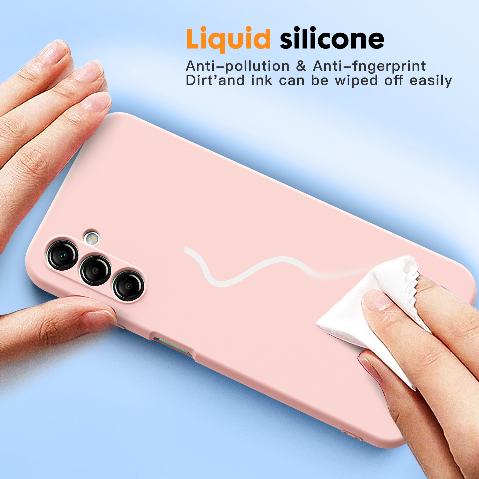 Samsung A14 4G 5G phone case Soft Flexible Rubber Protective Cover pink liquid silicone This silicone case fits snugly over the buttons and curves of your device without adding bulk. A soft microfiber lining on the inside helps protect your phone. Yoke
