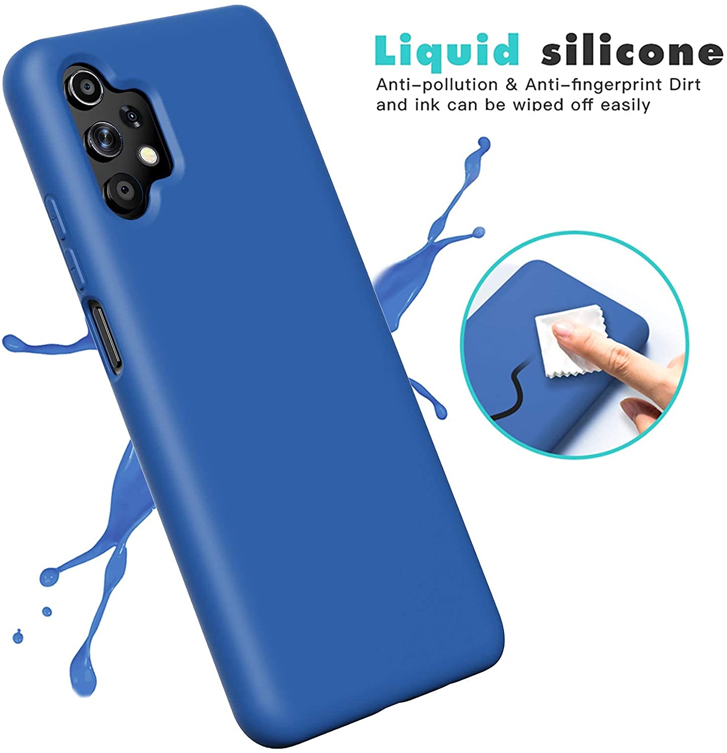 Samsung A32 5G phone case Soft Flexible Rubber Protective Cover blue liquid silicone This silicone case fits snugly over the buttons and curves of your device without adding bulk. A soft microfiber lining on the inside helps protect your phone. Yoke
