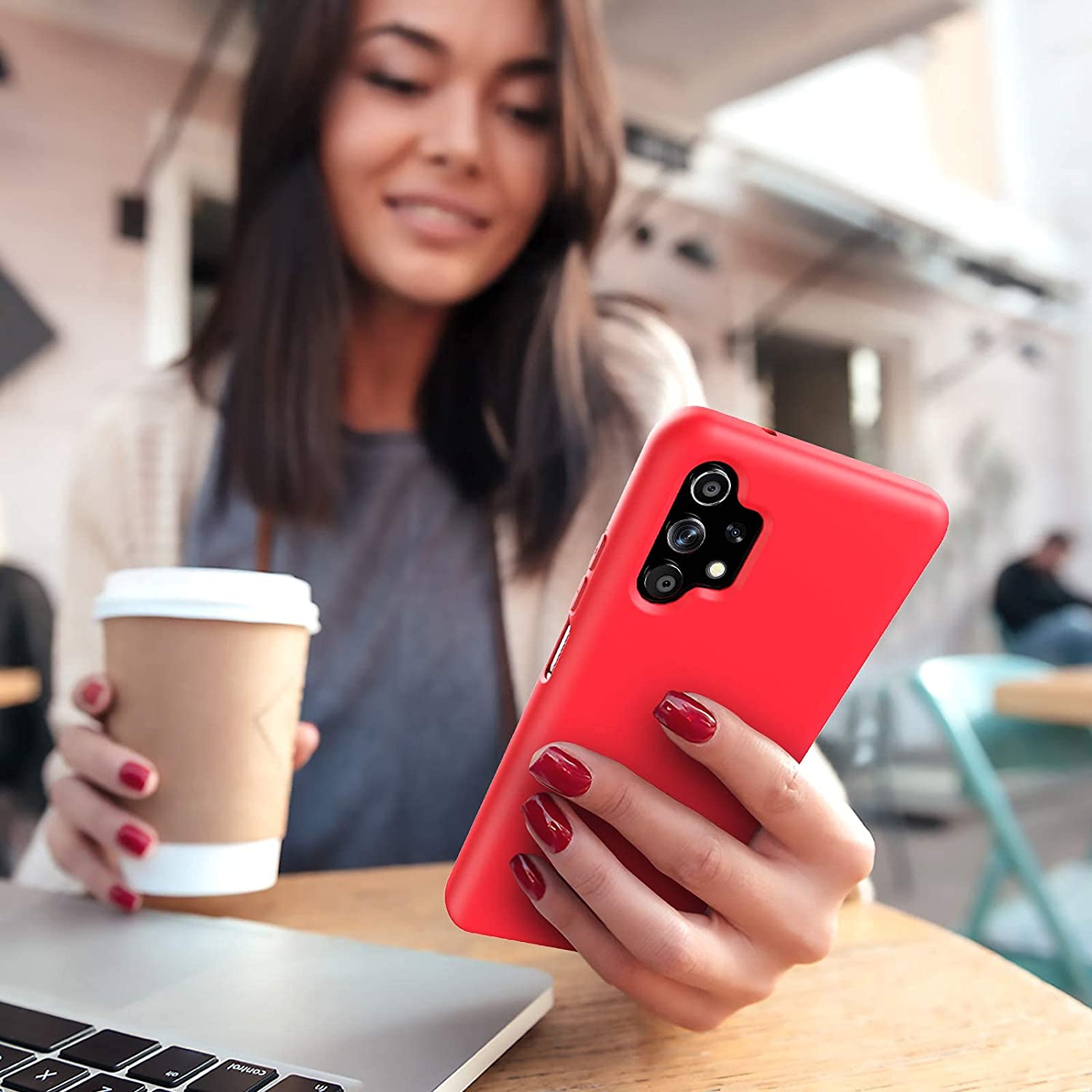 Samsung A32 5G phone case Soft Flexible Rubber Protective Cover red liquid silicone This silicone case fits snugly over the buttons and curves of your device without adding bulk. A soft microfiber lining on the inside helps protect your phone. Yoke