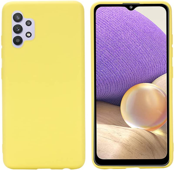 Samsung A32 5G phone case Soft Flexible Rubber Protective Cover yellow liquid silicone This silicone case fits snugly over the buttons and curves of your device without adding bulk. A soft microfiber lining on the inside helps protect your phone. Yoke